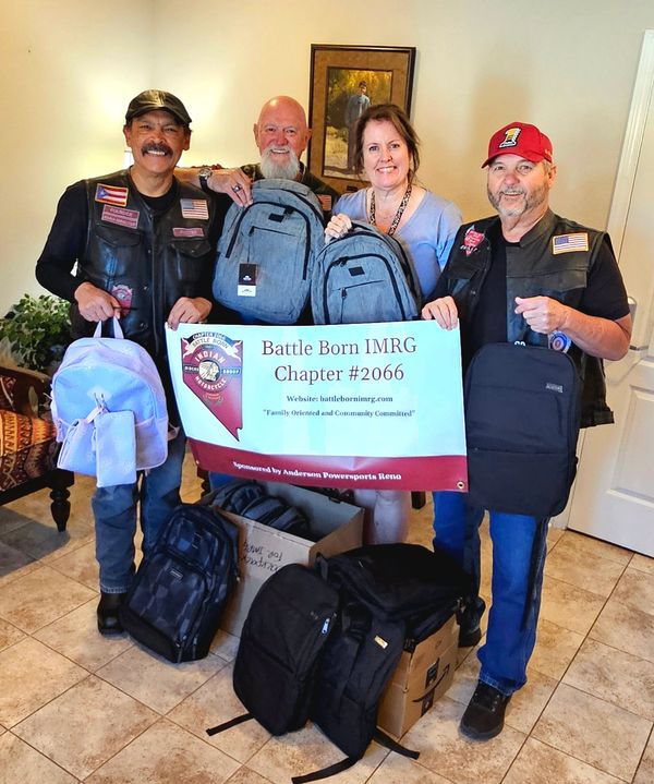 Our sponsor, Anderson Powersports Reno, matched our donation with an additional 50, bringing our total to 100 beautiful backpacks.